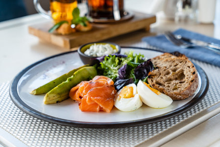 Freshly cooked salmon with vibrant sauce served in a restaurant