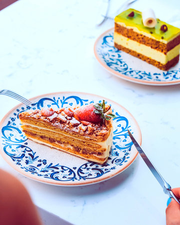 A delectable tableau unfolds as an array of exquisite pastries graces the table. Glistening with glaze, these indulgent treats showcase a symphony of textures and flavors. The artful presentation invites you to savor the sweet harmony of culinary delights in a feast for the eyes and palate.