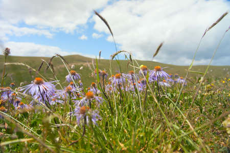 bright and beautiful purple flower high in the mountains