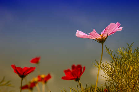 Pink and red cosmos flowers garden and soft focus