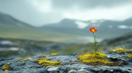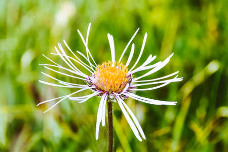 Beautiful dried flower, plant on mountain background. Concept of clean environment and protection. Loneliness and meditation nature.