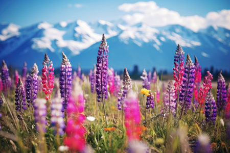 A close-up view of a vibrant wildflower meadow bursting with a kaleidoscope of colors.