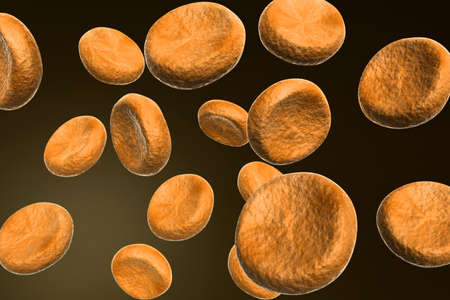 Red blood cells on a dark background. 3d render illustration.
