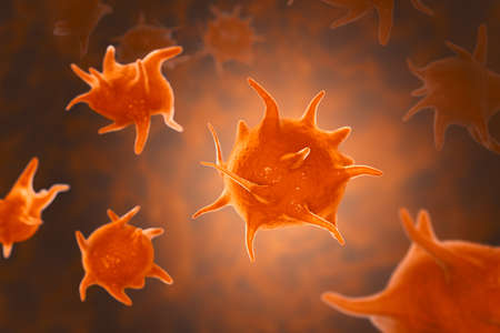 Activated platelets, also known as thrombocytes, blood cells responsible for the healing and closure of wounds, 3D illustration