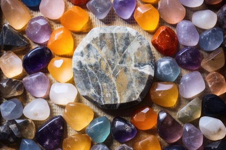 AI Generated. Colorful translucent stones are arranged in a square backlit panel