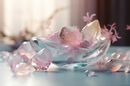 Elegant digital rendering showcases luminous light refraction and soft texture gradients, creating a mood of serene luxury and mystical allure. Ideal for crystal therapy visuals, metaphysical shop displays, gemstone jewelry promotions, wellness spa branding, and geology education resources. High-fidelity details support versatile use in web graphics, print posters, s... AI-generated illustration.