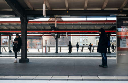 Travelers and commuters waiting for a train on the train platform of Bucharest North Railway Station (Gara de Nord Bucharest) in Bucharest, Romania, 2022