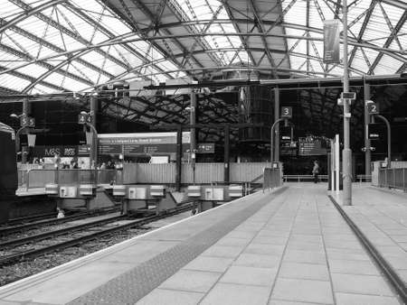 LIVERPOOL, UK - CIRCA JUNE 2016: Lime Street railway station in black and white