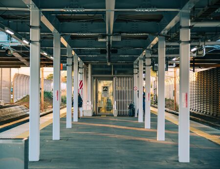 The train station in Jakarta, Indonesia at dark evenings, the station is empty of passengers who have returned home after getting off the train