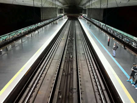 Railway station platform. Railway station in Madrid, Spain. Europe.
