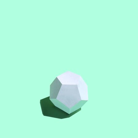 Paper white dodecahedron in bright sunshine. Volumetric handmade paper objects. Paper art and craft. Trendy hobby. Minimal artistic concept