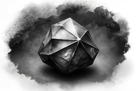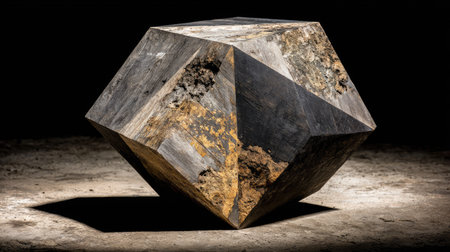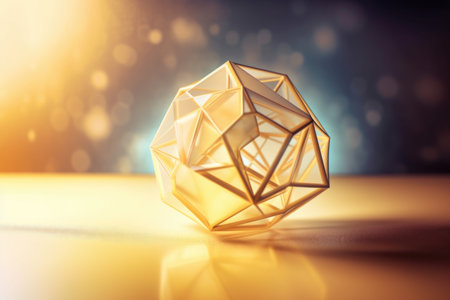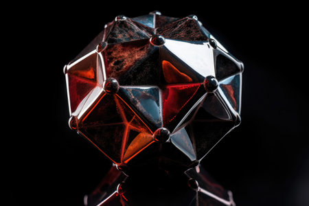 dodecahedron with light reflections on black surface, created with generative ai