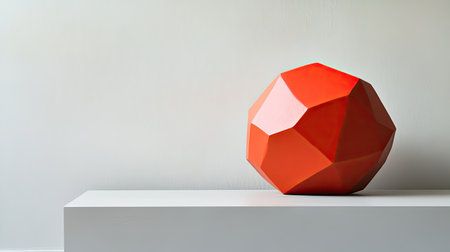 A striking abstract red sculpture rests on a minimalist surface, showcasing geometric form and vibrant color. Perfect for enhancing modern interiors.