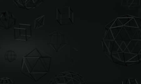 3D illustration. Dark gray background with abstract geometric shapes in space