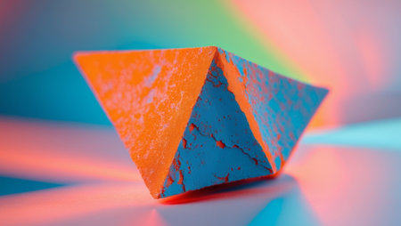 AI Generated. Abstract orange textured triangle on vibrant background