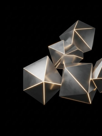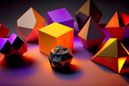 3d rendering of abstract geometric shapes in low poly style on dark background