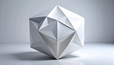 3d rendering of a white polygonal object in the light room