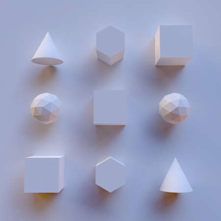 Still life presentation of geometric objects, 3d rendering. Computer digital drawing.