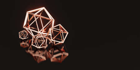 3d illustration of abstract geometric shapes on black background with lighting effect