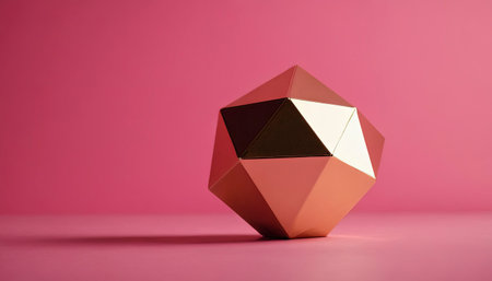 3d illustration of a golden geometric figure on a pink background.