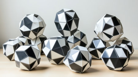 This image features an artistic arrangement of geometric shapes in black and white, presenting a modern aesthetic suitable for design enthusiasts and creatives.