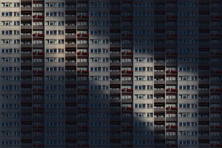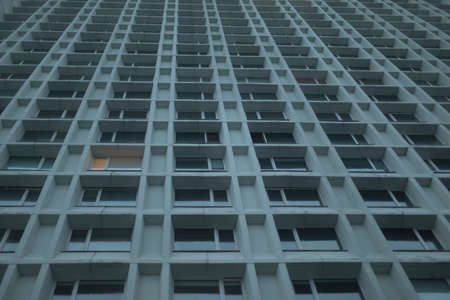 Wall with Iluminated windows. Detail of soviet era block apartment building
