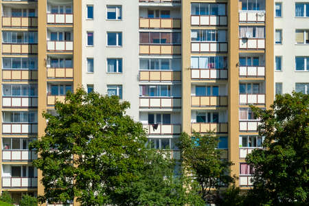Facade of social housing in a residential area of ​​the city. Close-up.