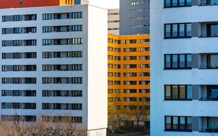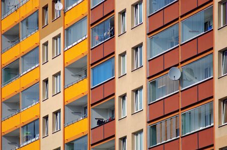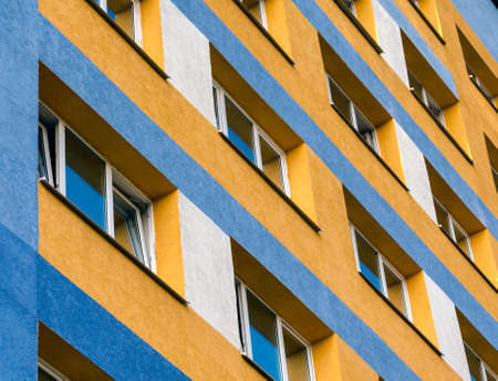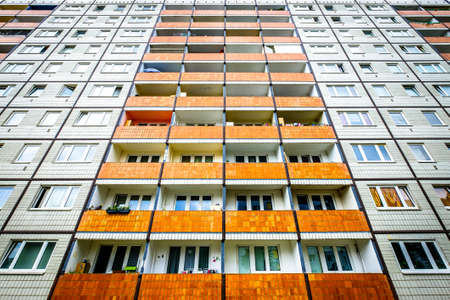 Facade of a renovated prefabricated building in the Neustadt district of Magdeburg in Germany