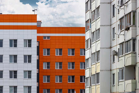 Multi-storey modern residential building. Housing construction. Residential fund. Sleeping residential area. Mortgage loans for young families