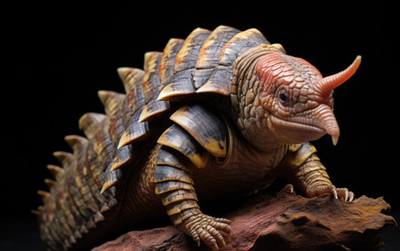 A close-up shot of a lizard with detailed scales and vibrant colors, showcasing its unique texture and features.