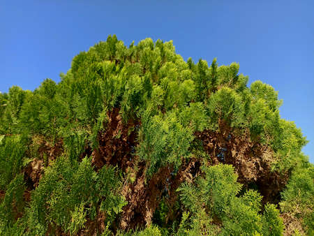A beautiful green cypress tree forming a backdrop on a summer day in Spain
