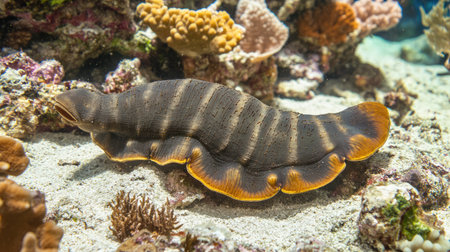 Explore the beauty of a vibrant sea creature showcasing striking textures and colors, gracefully moving through its underwater habitat in a serene environment.