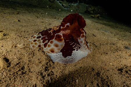 Spanish dancer, Hexabranchus sanguineus, isolated on blue water background. The Spanish dancer is a dorid nudibranch. Picture from Malapascua, Philippines
