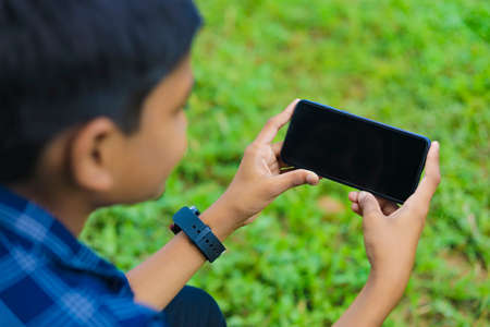 Bucharest, ROMANIA - May 10, 2021: Illustrative editorial concept image of a child playing Battlefields game on a mobile phone.