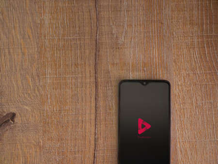 Kathmandu, Nepal - November 7 2020: Hands using YouTube app on android phone indoors.