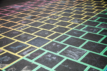 colorful hopscotch game drawn on to a pavement