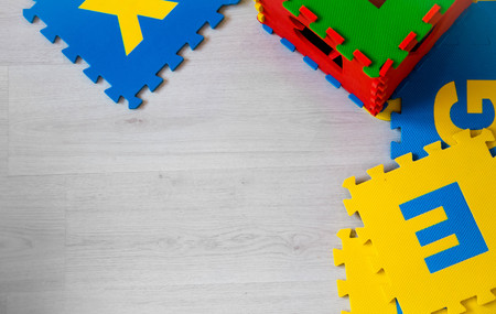 Colorful jigsaw tiles and children's play equipment, used for children or kindergarten for non-slip surfaces and backgrounds.