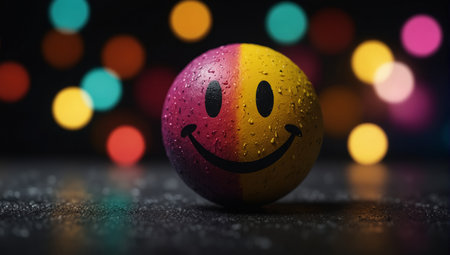Colorful bokeh with cheerful smiley faces, vibrant and happy concept