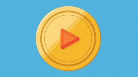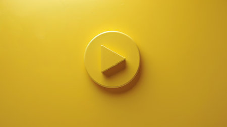 This image presents a play button icon, centrally positioned against a gradient background. The button features a three-dimensional effect with bright orange and yellow hues, framed by a silver border. The composition suggests digital media and entertainment, suitable for advertising, websites, or design projects. The smooth lighting adds visual appeal for various commercial applications.