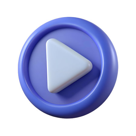A 3D render of a play button. in a light blue color scheme. perfect for web design. app icons. and UI interfaces. This button adds a fun. playful touch to any digital project.