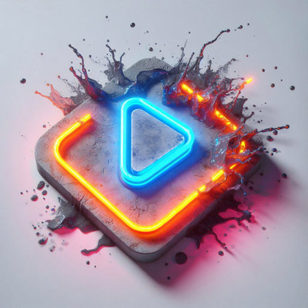 A close-up view of multimedia buttons including play, pause, and stop, vividly lit within a high-tech environment, highlighting modern digital interface design.