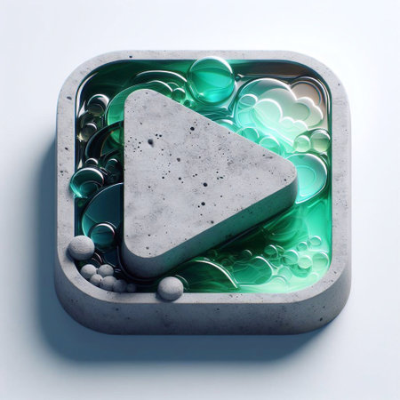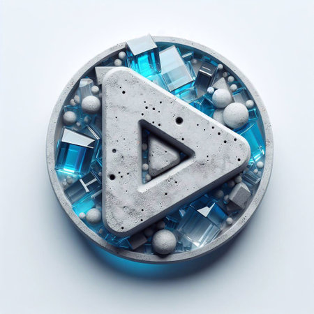 Play button made of Concrete blent with blue glass. AI generated illustration