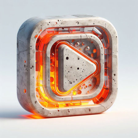 Play button made of Concrete blent with orange glass. AI generated illustration