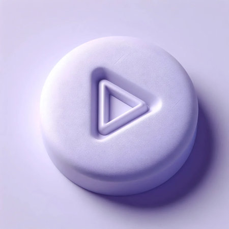3D glossy purple circular button featuring a raised white play symbol, representing media playback, video streaming, and digital entertainment.