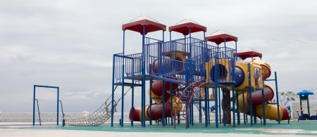 Children playground with colorful slides in the park.