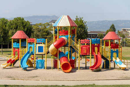 Children's playground in a park built for the development of people and entertainment