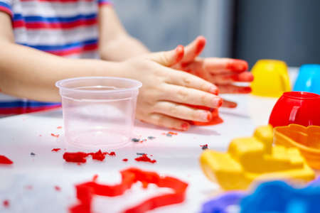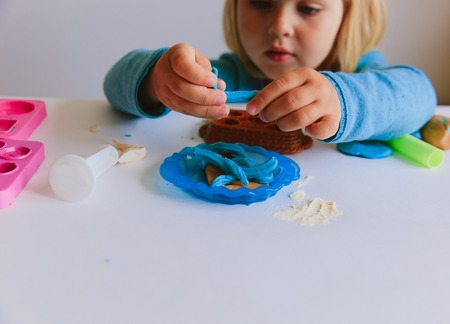 Child playing with clay molding shapes, kids crafts