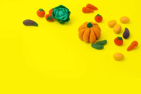 coloful plasticine on yellow background copy space