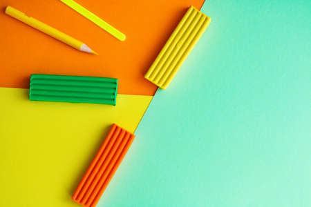 Plasticine and counting sticks for childrens creativity and development on colored paper