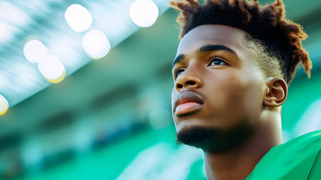 Athlete gazes intently ahead, displaying concentration before a crucial moment in the game